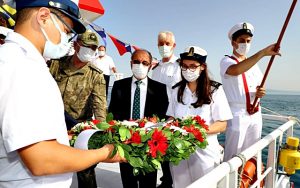Bu anlamlı günde deniz şehitlerimizi de anmak isterim. Feragat ve fedakarlığın en büyük unvanı ve rütbelerin en yücesine ulaşan ve denizlerin engin maviliklerini kendilerine mezar edinen kahraman deniz şehitlerimizi saygıyla anıyorum. Ruhları Türk denizciliğine rehber olsun.