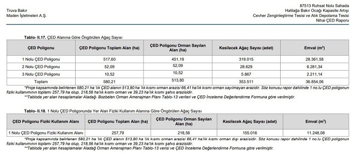 Çanakkale Milletvekili Özgür Ceylan, Cengiz Holding’in Halilağa Bakır Madeni Genişletme Projesi’nde 2009/7 sayılı Genelge sayesinde yürütmeyi durdurma kararını yeniden başlattığı İDK süreciyle baypas ettiğini ileri sürerken, “ÇED raporuna göre proje sahasında 155 bin ağaç kesilecektir, tekrar ediyorum: 155 bin ağaç kesilecektir” diye konuştu.