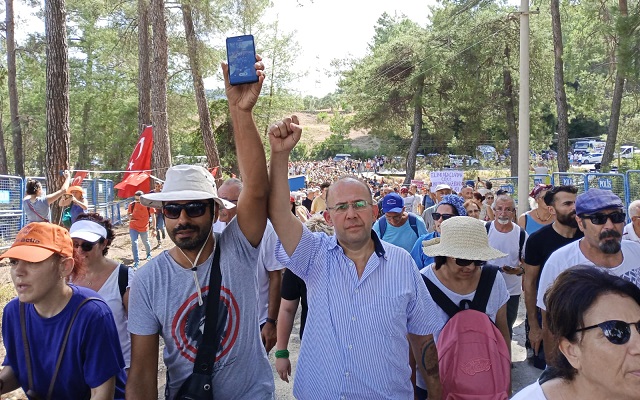 “Ne Mutlu Türküm Diyene” sloganını yineleyen Aşkar, Akbelen Ormanları’nın korunması gerektiğini söyledi ve “Yasasın Atatürk Cumhuriyet Ormanları, yasasın Ne Mutlu Türküm Diyen Atatürk milliyetçileri” şeklinde konuştu.