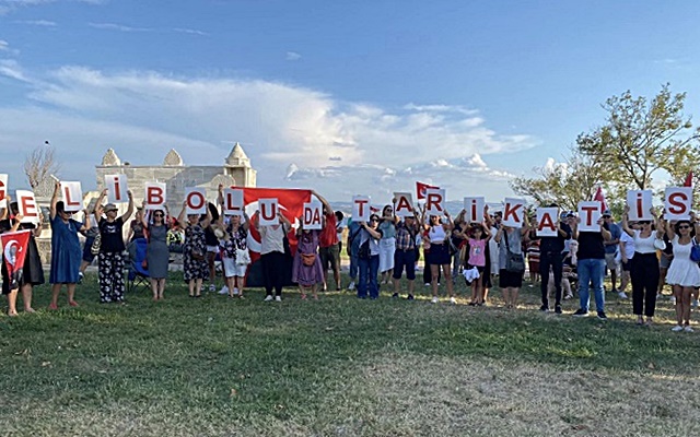Gelibolu Cumhuriyet Platformu üyeleri ile vatandaşlar, “T.C. Laiktir Laik Kalacak” ve “Gelibolu’da Tarikat İstemiyoruz” pankartlarıyla bir araya gelerek, hem Mustafa Kemal Atatürk’ü andı hem de geçtiğimiz günlerde aynı yerde gerçekleştirilen bir tarikat etkinliği için tarikatlara karşı duruşlarını gösterdiler.