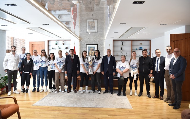 Kadınlar Bölgesel Basketbol Ligini şampiyon olarak tamamlayan J&M Çanakkale Belediyespor Kadın Basketbol Takımı, kazandıkları kupayla birlikte Çanakkale Belediye Başkanı Ülgür Gökhan ile yeni başkan Muharrem Erkek’i başkanlık makamında ziyaret ederek ettiler.