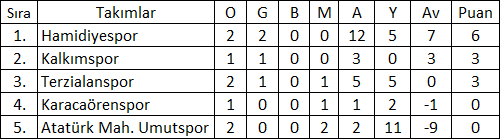 Çanakkale İkinci Amatör Lig 2.Hafta A-Grubu Puan Durumu:
