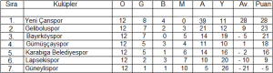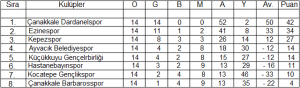 Çanakkale Süper Amatör Lig B-Grubu 14.Hafta Puan Durumu: