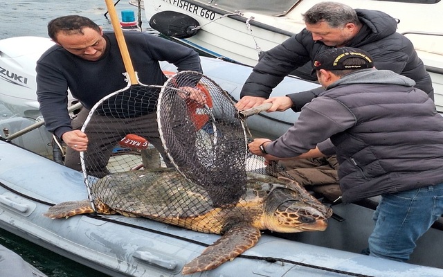 Çanakkale yat limanına bağlı tekneler arasında zarar görmemesi için sudan çıkarılan caretta caretta (deniz kaplumbağası), Çanakkale Belediyesi ekipleri tarafından Doğa Koruma ve Milli Parklar Müdürlüğü ekiplerine teslim edildi.