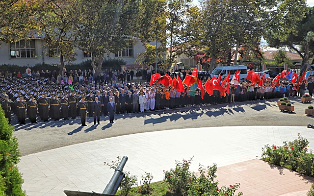 Törende Gelibolu Kaymakamı Bekir Abacı, 2. Kolordu Komutanı Tümgeneral Rasim Yaldız ile Gelibolu Belediye Başkanı Mustafa Özacar tarafından çelenk sunulmasının ardından saygı duruşunda bulunuldu ve İstiklal Marşı okundu.