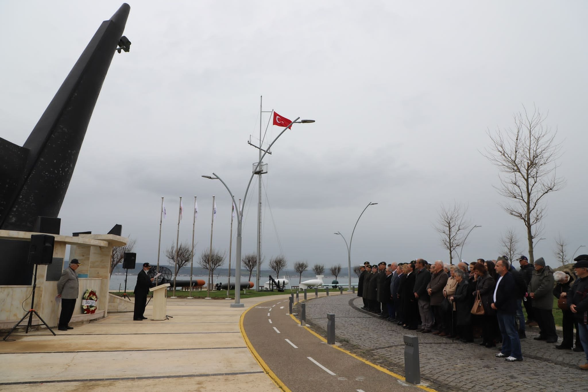 Deniz Şehitlerini Anma Günü dolayısıyla, Gelibolu Feneraltı mevkiindeki Deniz Kuvvetleri Kültür Parkı’ndaki Şehit Denizaltıcılar Anıtı önünde gerçekleştirilen törene Gelibolu Belediye Başkanı Mustafa Özacar, komutanlar, dernek yöneticileri, siyasi parti temsilcileri ve vatandaşlar katıldı.