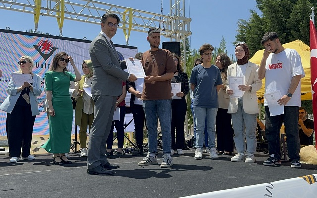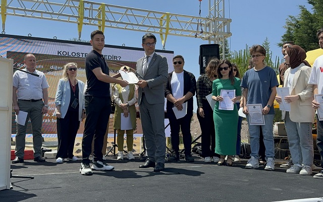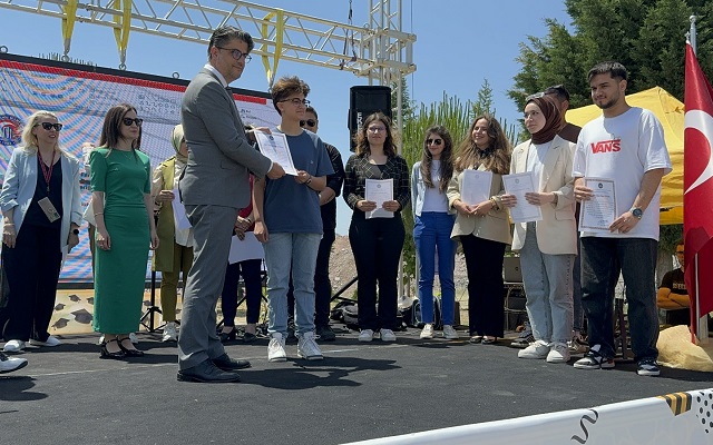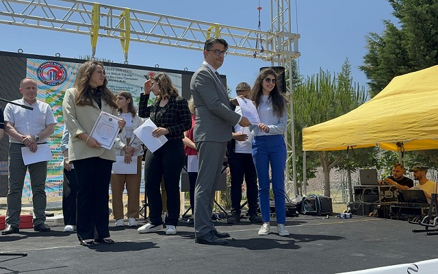 Ezine Gıda İhtisas OSB MYO bünyesinde bu yıl birbirinden değerli projeler desteklenmeye değer buldu. Bu kapsamda proje sahiplerine belgeler takdim edildi. Ardından katkılarından dolayı Ezine Kaymakamı Yunus Kızılgüneş tarafından Ezine Belediye Başkanı Güray Yüksel ve Ezine Gıda İhtisas Organize Sanayi Bölgesi Müdürü Alper Altınok’a plaket takdimi oldu. Çanakkale Onsekiz Mart Üniversitesi Rektörü Prof. Dr. R. Cüneyt Erenoğlu’da projelerde üniversiteye katkı sunan firmalara plaket takdim etti. Programa Geyikli Belediye Başkanı Mevlüt Oruçoğlu, Çanakkale İŞKUR Müdürü Mehmet Uğur Yavuz ve çok sayıda daire müdürleri, askeri komutanlar, akademisyenler ve öğrenciler katıldı.