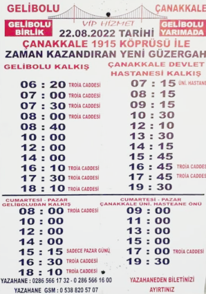 22 Ağustos 2022 Pazartesi günü başlayacak olan Gelibolu – Çanakkale direkt seferleri 1915 Çanakkale Köprüsü üzerinden gerçekleştirilecek ve Çanakkale Mehmet Akif Ersoy Devlet Hastanesi ile Çanakkale 18 Mart Üniversitesi (ÇOMÜ) Hastanesine ulaşılacak.