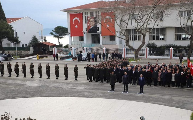 2’nci Kolordu Komutanlığı Karargahı önündeki tören saygı duruşu ile başladı, İstiklal Marşı’nın okunması ve Atatürk Anıtına çelenklerin sunulmasının ardından sona erdi.
