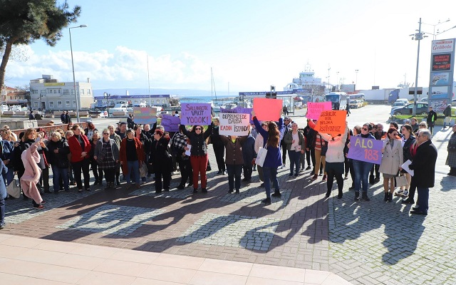 Atatürk Meydanındaki Atatürk Anıtı önünde toplanan Gelibolu Kent Konseyi Kadın Meclisi, Gelibolu Kadınlar Derneği ve Gelibolu Öncü Kadın Üretim Kooperatifi yönetici ve üyeleri ellerindeki dövizlerle kadın haklarıyla ilgili mesajlar verdiler.