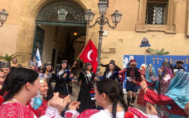 Kortejleri izlemeye gelen binlerce kişi, Türk grubuna sevgi gösterilerinde bulundular. Türk bayrağı ile festival ve grubun adını taşıyan flamalarla ve festival komitesince hazırlanan ülkemizin adının yazılı olduğu panoyu taşıyan gurup üyeleri halk oyunları oyuncuları ve müzisyenleri selamlayarak bol bol fotoğraf çektirdiler. Korteje katılanlar Sicilyalı ve yabancı turistler, Türk grubunu coşkuyla karşıladılar. Kortejdeki Türk katılımcılar ile Türkçe bilenler arasında unutulmaz anlar yaşandı. “Türkiye, Türkiye” diyerek tempo tuttular ve ülkemizin sanatçılarını, futbolcularını ve şehirlerini söyleyerek anı fotoğrafları çektirdiler.
