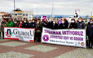 Bugün saat 14.00’de İskele Meydanı Atatürk Anıtı önünde saygı duruşu ve İstiklal Marşı’nın okunmasıyla başlayan “25 Kasım Kadına Yönelik Şiddetle Mücadele Günü” etkinliğinde Gelibolu Kent Konseyi Bileşenleri Atatürk Anıtına Kadınlar..