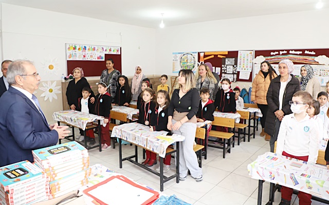 Gelibolu Belediye Başkanı Mustafa Özacar, Kültür ve Sosyal İşler Müdürlüğümüzce pilot okul olarak belirlenen Piri Reis İlkokulu’nda karnelerini alarak yarıyıl tatiline giren öğrencilerin karne sevincine ortak olarak kendilerine kitap seti hediye etti, verimli ve keyifli bir tatil dileğinde bulundu.