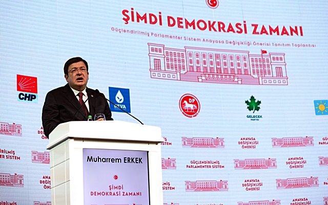 CHP Genel Başkan Yardımcısı ve Çanakkale Milletvekili Muharrem Erkek, Altılı Masa tarafından hazırlanan Güçlendirilmiş Parlamenter Sistem Anayasa Değişikliği Önerisi Tanıtım Toplantısı’nda bir konuşma yaptı.