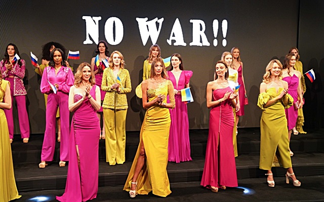 Özge Ulusoy, defile sonunda Rusya ve Ukrayna bayraklarıyla verilen “savaşa hayır” mesajının öneminden bahsederken, “bu mesaj çok değerliydi. Barış için bu adımı attığımız için ve böyle bir mesajın parçası olduğum için mutluyum” dedi.