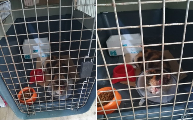 Belli ki ev kedisiyken sokaklara bırakılmış ve ama kediler ama köpekler tarafından saldırıya uğramış ve yüzünde açık yarası var, bir gözünü kaybetmiş. Yavrularında gözleri sıkıntılı, bakım yapılması gerekiyor.