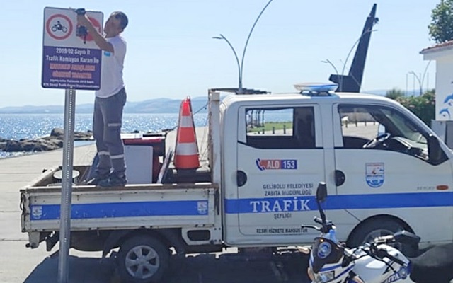 Gelibolu Belediyesi sosyal medya hesabından yapılan açıklamada, “Kurallara uyalım, uymayanları uyaralım! Zabıta Müdürlüğü ekiplerimizce; Gelibolu ilçe merkezindeki trafiğe kapalı alanların girişlerine “Motorlu araçların girmesi yasaktır” yazılı uyarı levhaları asıldı” denildi.