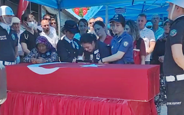 Şehit polis memuru Yahya Ergin’in Türk bayrağına sarılı naaşı Mardin’deki törenin ardından uçakla önce Çanakkale Havalimanı’na oradan da Çanakkale’ye bağlı Ezine ilçesinin Arasanlı köyündeki baba evine getirildi.