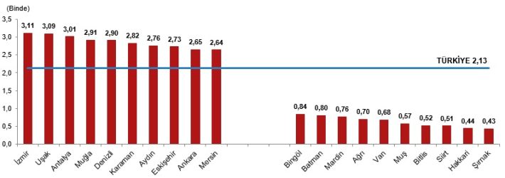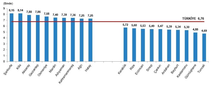 TÜİK verilerine göre kaba evlenme hızının en yüksek olduğu il binde 8,15 ile Şanlıurfa oldu.