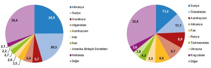 TÜİK verilerine göre yabancı gelinler uyruklarına göre incelendiğinde, yabancı gelinler içinde % 13,2 ile Suriyeli gelinler birinci sırada yer aldı. Suriyeli gelinleri % 11,1 ile Özbekistanlı gelinler ve % 8,9 ile Azerbaycanlı gelinler izledi.