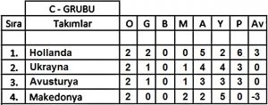 C-Grubu: Ukrayna (2) Makedonya (1) – Hollanda (2) Avusturya (0)