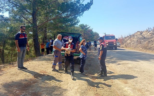 Çanakkale Belediyesine bağlı Veteriner İşleri Müdürlüğü ekiplerince Damyeri Mevkinde başlayan yangından etkilenen hayvanlar, Çanakkale Belediyesi Sokak Hayvanları Bakım ve Rehabilitasyon Merkezinde geçici süreliğine misafir edilmek üzere yangın bölgesinden tahliye ediliyor.